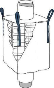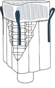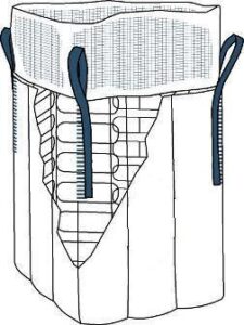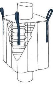This FIBC we manufacture with a filling spout at the top which will be closed after filling, and a discharge spout in the bottom that will be opened in the emptying process